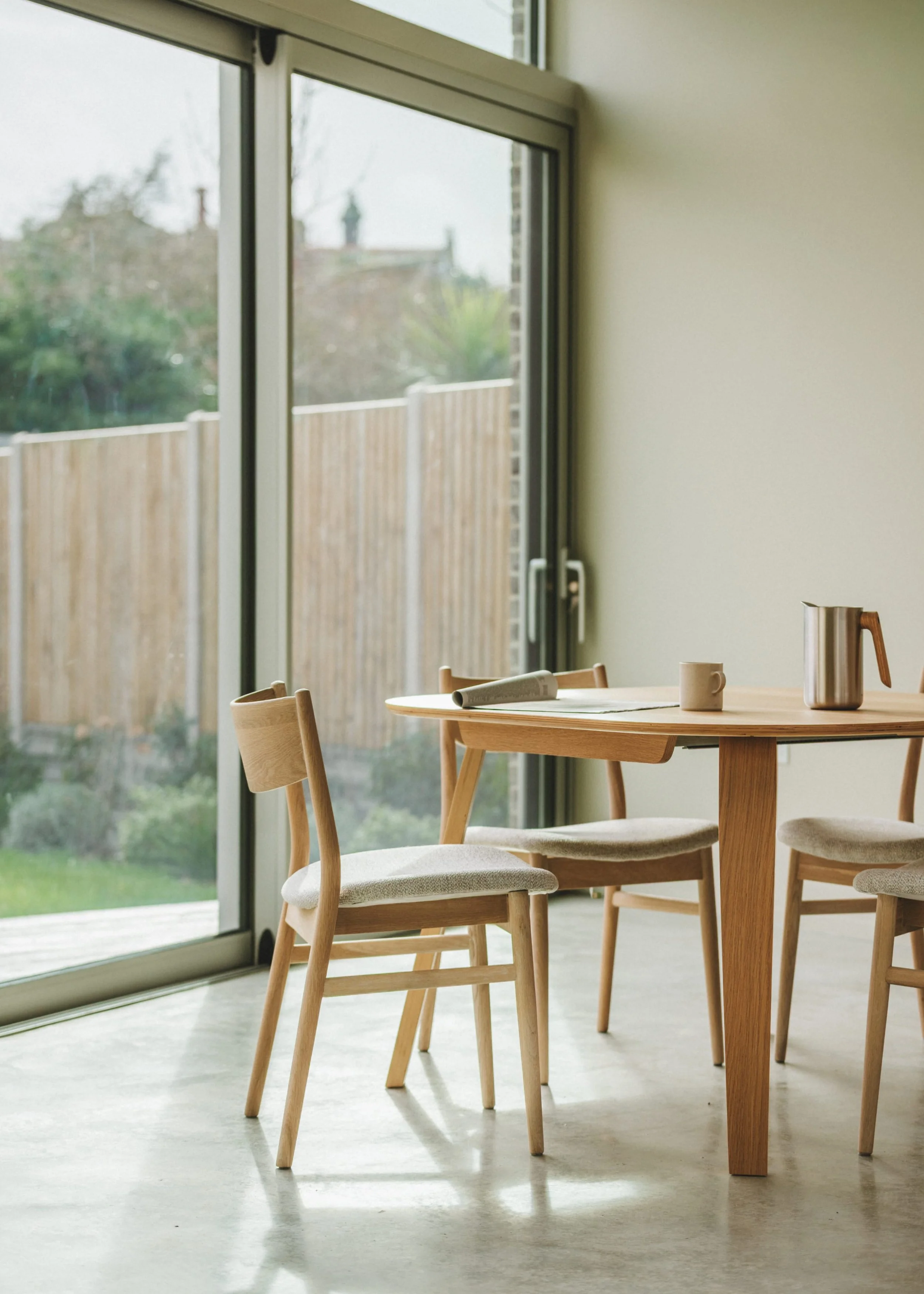 We were commissioned to design a new house on the site of a former coach house belonging to a large neighbouring property. The brief was for a contemporary home with bright, open living spaces overlooking the garden and a neutral palette throughout, modern, while sitting comfortably alongside its historic neighbour.